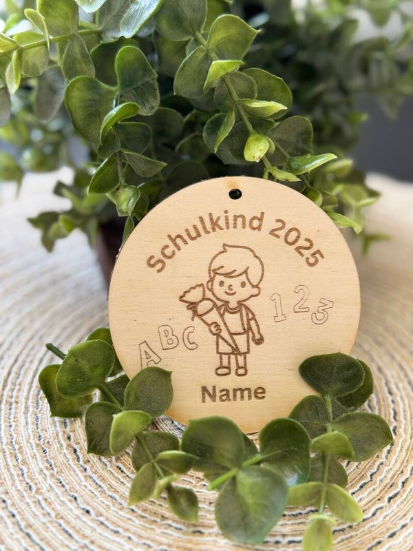 - Personalisierbarer Anhänger „Schulkind 2025“ – mit Name des Kindes graviert, perfekt für die Schultüte oder den Schulranzen