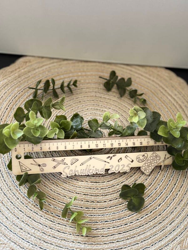 - Holzlineal (20 cm) mit integrierter Lesehilfe – speziell für die 1. Klasse, unterstützt beim Lesenlernen und ist zugleich mit verspielten Schulmotiven verziert